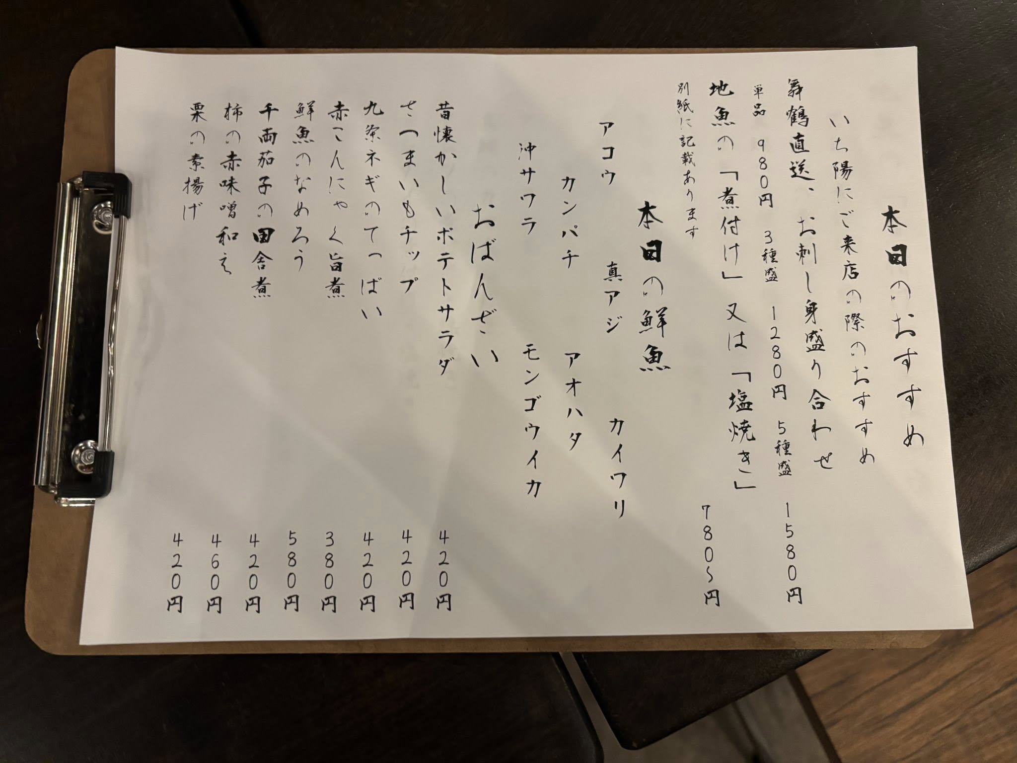 料理方面,店主具有割烹與和食料理背景,融合傳統與現代風格,菜色以當日鮮魚、煮物、烤物及多樣酒肴為主(鮮魚料理可以選擇是要用滷煮的還是鹽燒),食材講究、手法細緻但價格親民。例如舞鶴直送鮮魚刺身與煮魚料理備受好評,料理與清酒的搭配規劃也充滿考究。