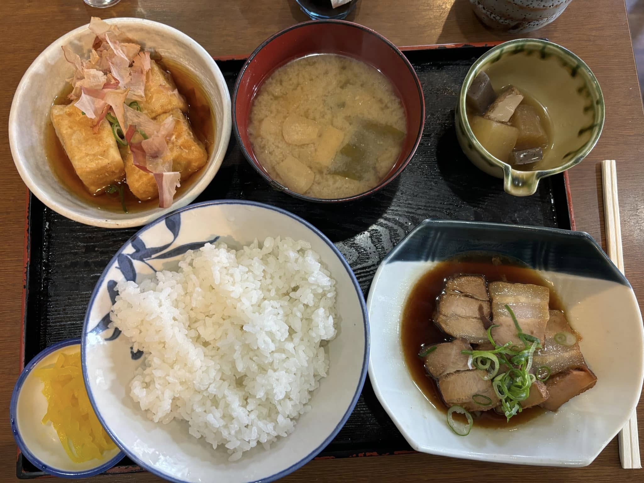 店內用餐的幾乎都是當地人,不過當地還有個算的上景點的建勳神社和今宮神社,偶爾也會看到幾個日本觀光客。不知道為什麼這天特別想吃肥肉,所以就點了角煮定食,不知道是不是自己的錯覺,總覺得日本的角煮偏甜,但整體來說還是挺下飯的。這裡的定食都在千円以下,算是親民的價位了。