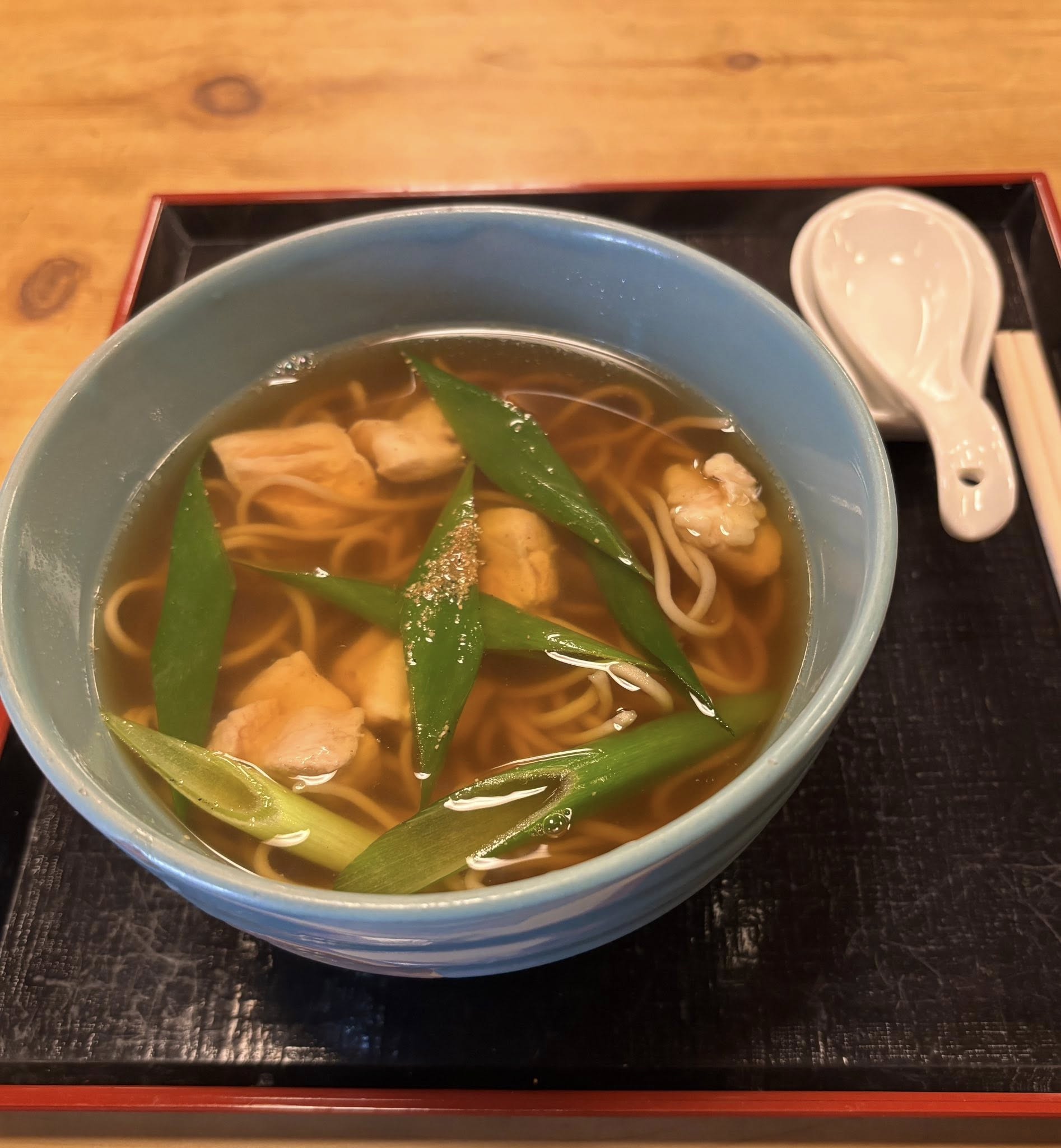 推門而入,店內空間樸實,帶著昭和時代的安定感。菜單選擇不複雜,重點自然放在蕎麥麵本身。出汁是標準的京都風格,清澈而溫和,不搶味,讓蕎麥的香氣慢慢浮現。冷蕎麥清爽俐落,熱蕎麥則多了一份柔軟與安心感。整體來說,我喜歡裡面的用餐氛圍,尤其是店員京都式的對應(稱讚的意思),這裏餐點份量都不大,喜歡講究CP值的人可以pass ,根據觀察當地人多於外國人,即便是在熱鬧的三条,這次點了雞南蠻蕎麥麵,下次試試烏龍麵好了