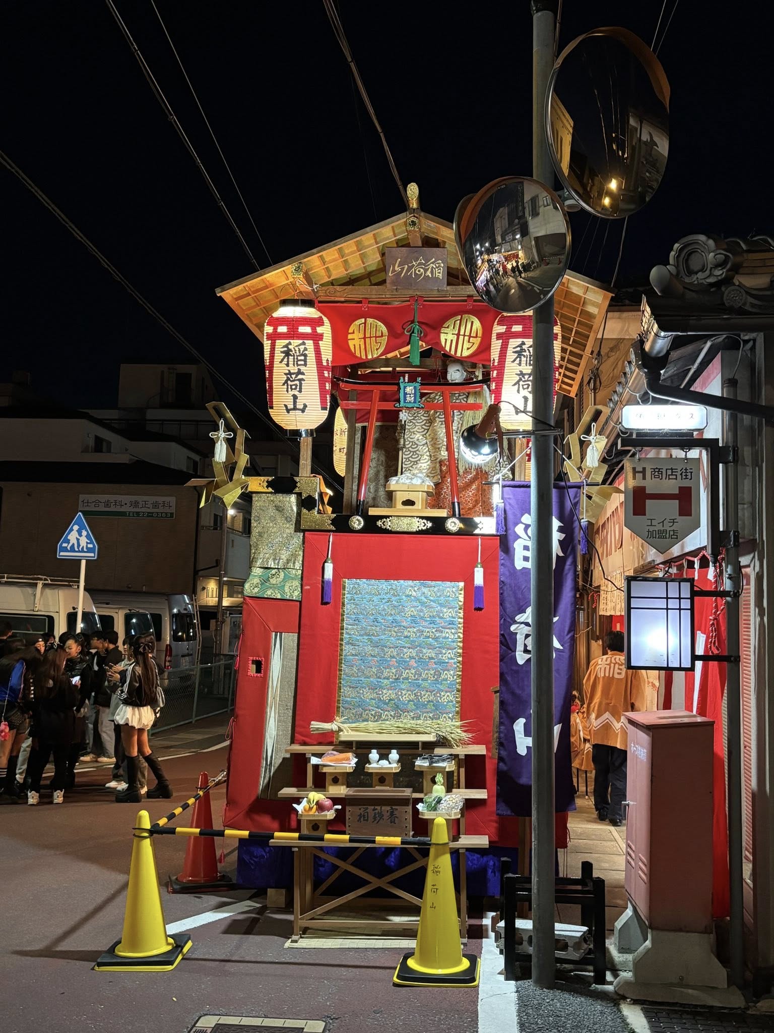 入夜時,大量民眾就會出現在形原神社前的屋台區,這裡是整個活動中最熱鬧的地方,由於是地方活動,你會發現現場此起彼落的招呼聲,都是相互認識的人家,小孩子玩成一堆非常熱鬧,這樣的鄰里氣氛自然也是在京都市內的祇園祭難以看到的。