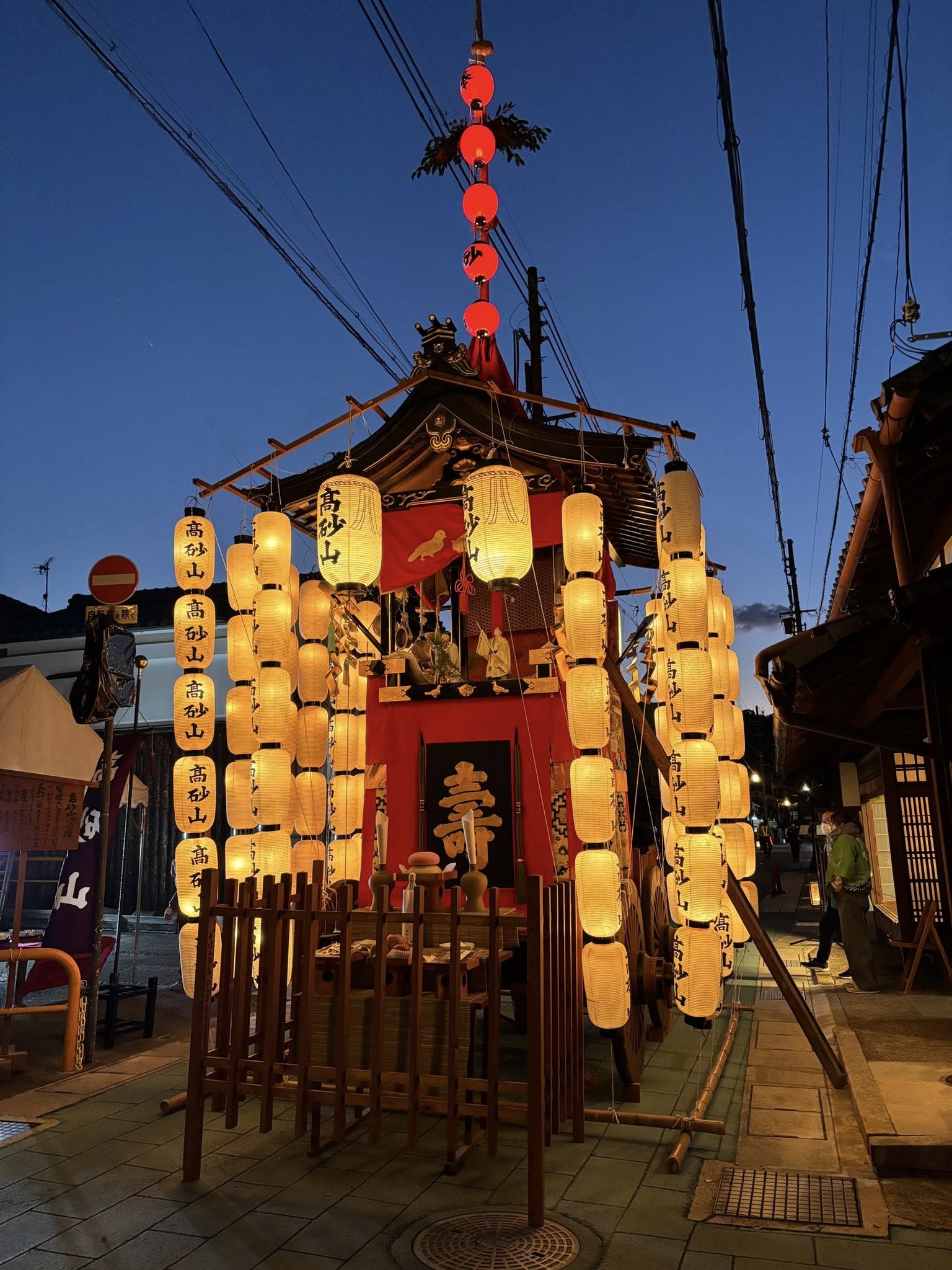 龜岡祭是龜岡市最具代表性的傳統祭典,每年10月中旬舉行,其核心為鍬山神社的例祭。與京都市中心的祇園祭相比,龜岡祭的山鉾從數量(11個)和尺寸都小一號,但更貼近地方生活,保留濃厚的在地氛圍。我這次去選擇的是宵宮舉行期間,就和京都的宵山意思是一樣的。